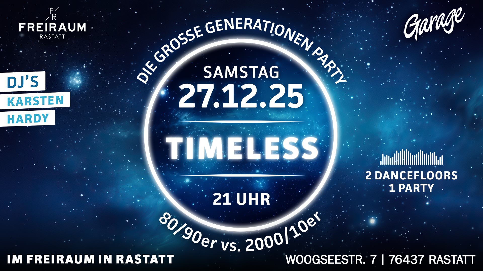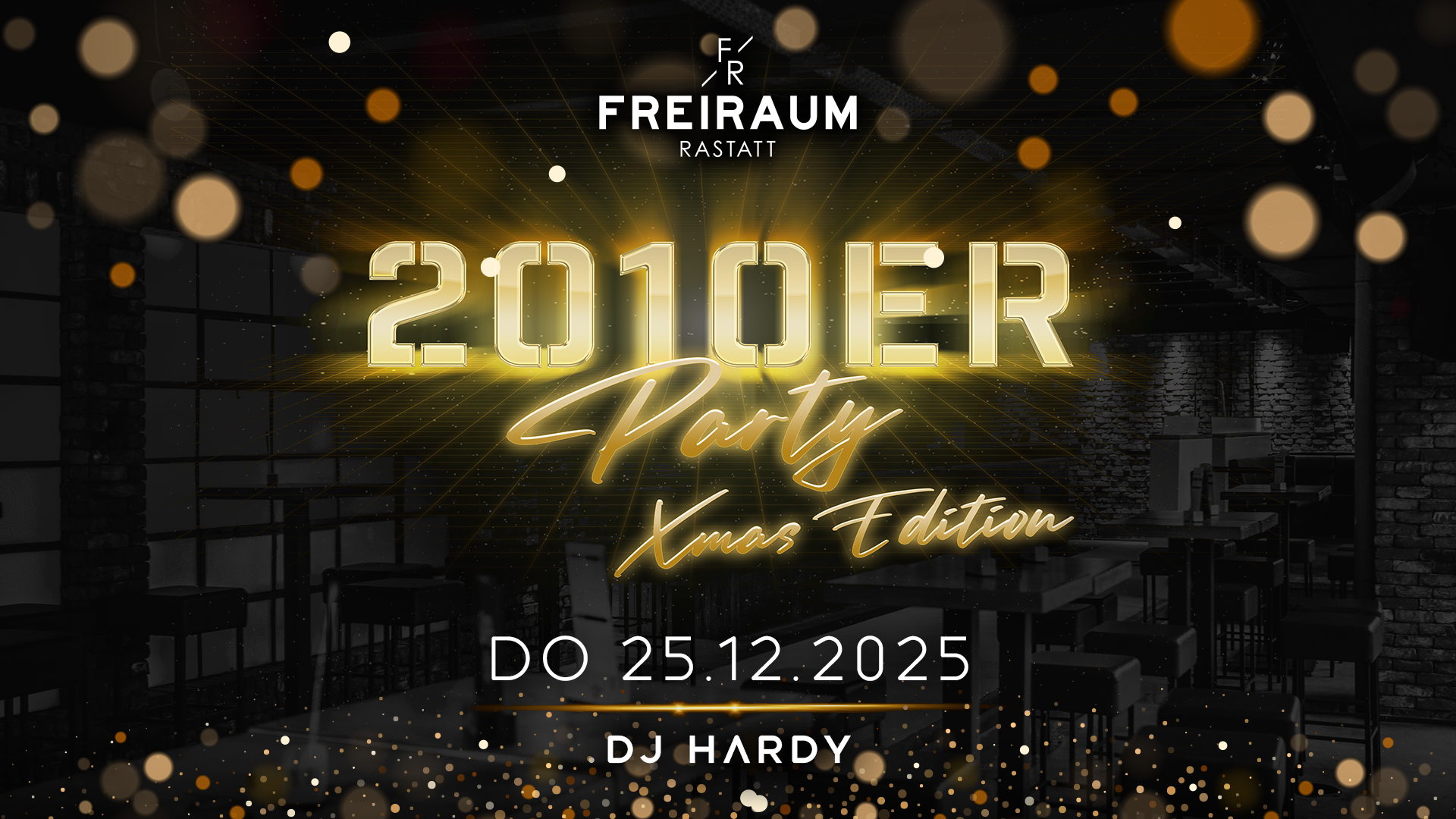 Wer nach der ruhigen & gemütlichen Zeit im engsten Kreis der Familie noch Lust auf ein kleines bisschen Action hat, ist herzlich Willkommen zur "X-MAS Party" im Freiraum Rastatt. Es gibt die besten Beats der 2010er auf die Ohren!